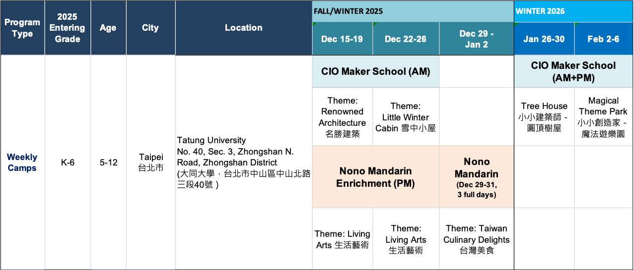 Half Day AM - CIO Maker / Half Day PM - Nono Mandarin Enrichment