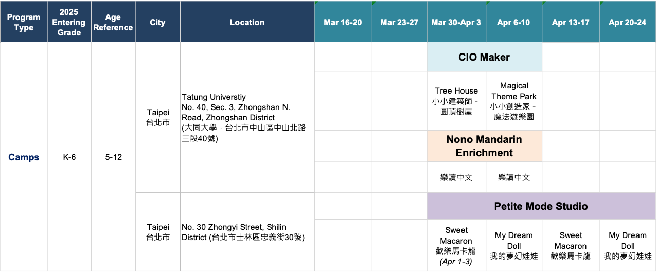 N.B. Any related travel and accommodations costs you incurred for your trip to Taiwan are NOT part of the camp booking fees and will NOT be refunded in the event of camp cancellation, either by you or us.